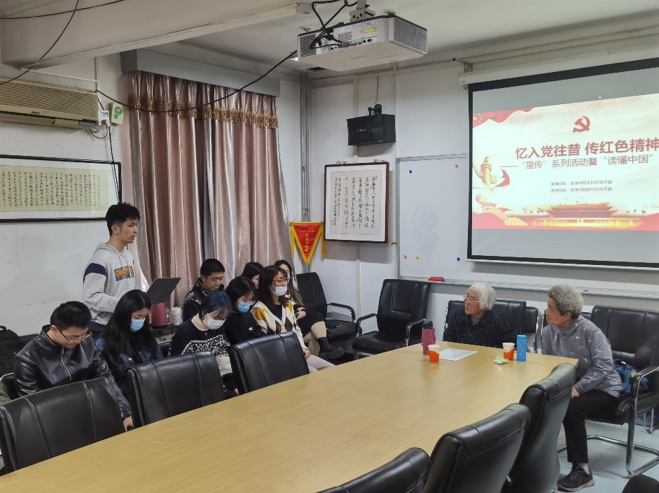 薪火相传,继往开来。时值中国共产党建党100周年之际,为教育引导广大青年学生爱党、爱国、爱社会主义,充分发挥“五老”亲历者、见证者、实践者的优势,扎实开展党史、新中国史、改革开放史、社会主义发展史等历史教育,久久成人网站、非洲学院本科生、研究生党支部应关工委关于开展“读懂中国”活动的指示,于2021年4月2日开展“忆入党往昔,传红色精神”——“星传”系列活动暨“读懂中国”活动。活动由本科生党支部预备党员丁一洺主持。