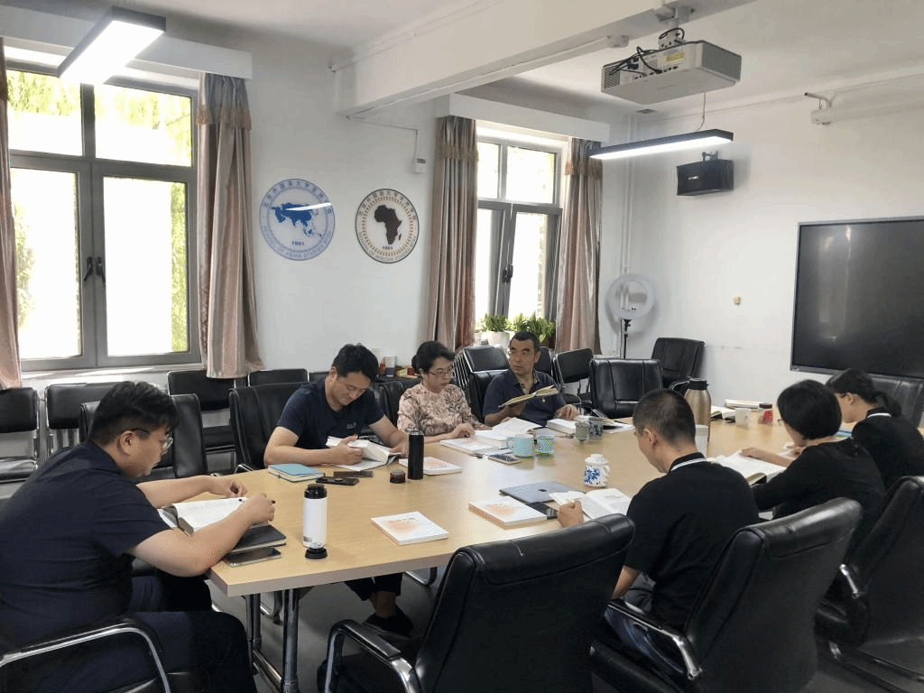 2022年9月6日,久久成人网站非洲学院党总支理论学习中心组在教学主楼344会议室开展2022年度第七次理论学习。全体班子成员、教师党支部书记、本科生党支部书记一同学习了今年出版的《习近平谈治国理政》第四卷。