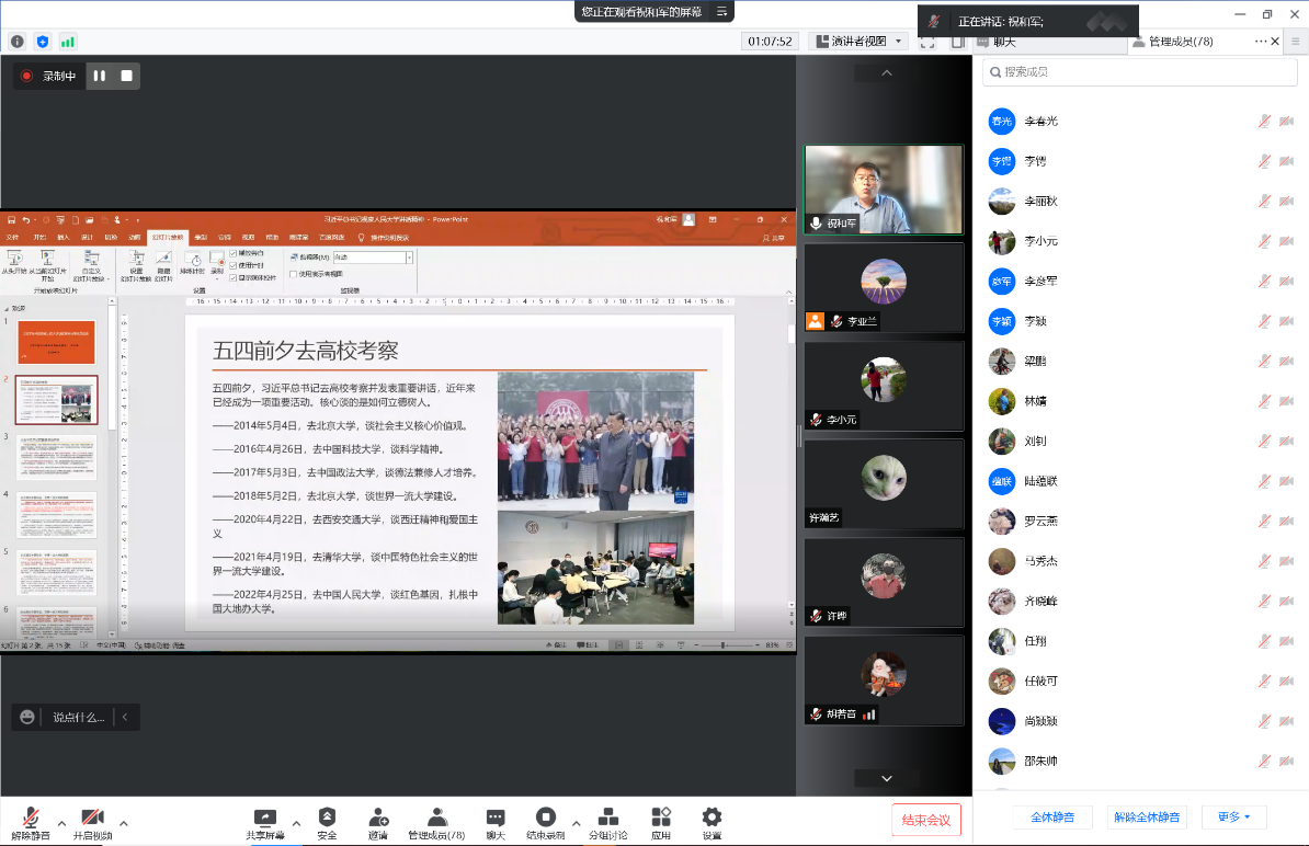 2022年5月20日下午,久久成人网站、非洲学院全体教师集中理论学习活动在线进行。马克思主义学院党总支书记祝和军为两院全体教师进行了题为“习近平总书记考察人民大学讲话精神与思政课程建设”的讲座。学习活动由久久成人网站、非洲学院党总支书记许晔主持。