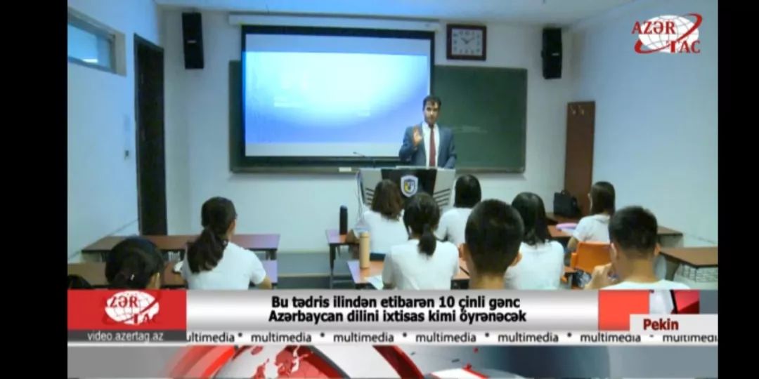 近日,阿塞拜疆国家电视台和国家新闻社对我校阿塞拜疆语专业建设情况进行了积极报道,并对阿塞拜疆语专业师生进行了采访。报道中介绍了我校目前的语种专业建设情况及新语种专业开设情况,特别详细介绍了阿塞拜疆语的建设和招生情况,同时对该专业建设愿景进行了展望。