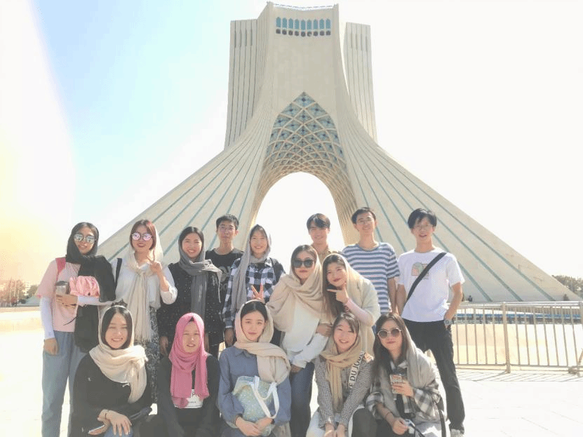 (2017级波斯语本科学生在伊朗塔巴塔巴伊大学留学,伊方教师为学生颁发毕业证书)