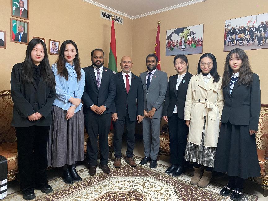 12月9日下午,应马尔代夫驻华大使馆邀请,北京外国语大学迪维希语三外课程师生赴使馆参加马尔代夫迪维希语语言文化交流会、茶话会活动。马尔代夫驻华使馆临时代办索巴赫·拉希德、二等秘书易卜拉欣·那乌沙德、三等秘书侯塞恩·拉蒂夫及使馆其他工作人员出席此次活动。