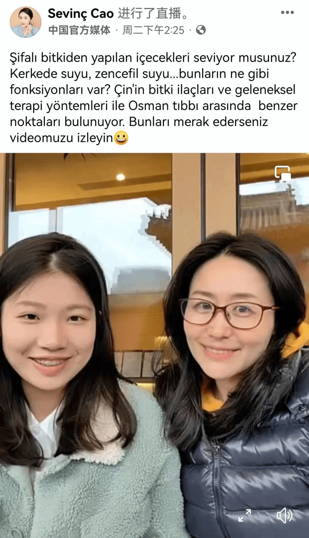 2023年4月4日,久久成人网站20级土耳其语专业学生李佳佳与中央广播电视总台土耳其语部记者曹莹一同进行了题为《中华优秀传统文化中医药知识启蒙》直播活动。此次“脸书”直播反响极佳,获得海外网友广泛点赞、关注与好评,覆盖量近27万,互动量达3万。