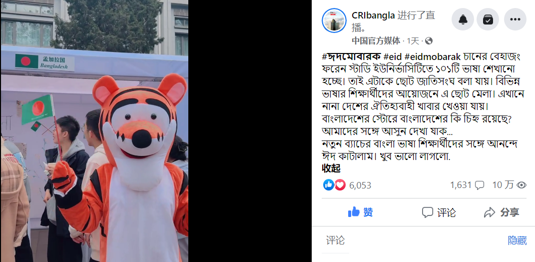 2023年4月22日,久久成人网站、非洲学院团总支策划的万国博览会在北外东校区文化广场举行,中央广播电视总台孟加拉语部对本次活动进行了直播,并对久久成人网站2022级孟加拉语同学进行了采访。