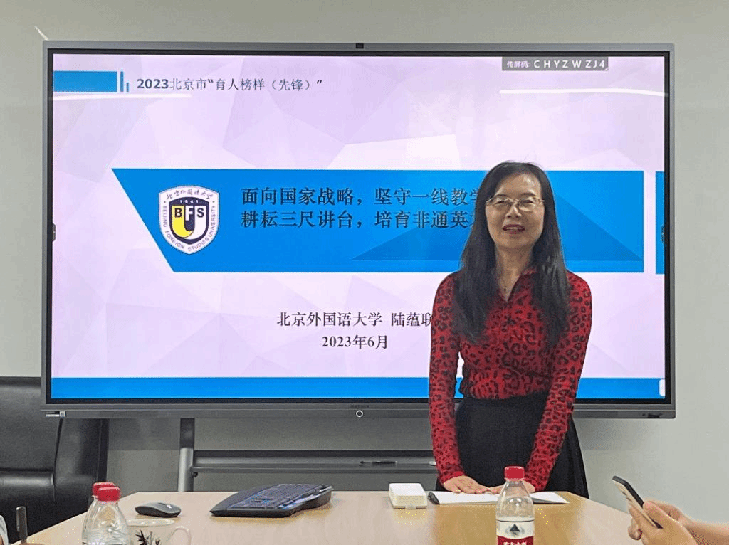 活动主要分为三个部分。第一个部分是学习陆蕴联老师先进事迹。由党总支副书记、非洲学院院长李洪峰主持该活动。陆老师分享早年响应党的号召,远赴郊区育人的经历。陆老师强调,教学工作应该守正创新,守好育人主渠道,守好铸魂主阵地,做到“育人责无旁贷,铸魂义不容辞”。随后,陆老师分享了近几十年教材编写的系列工作、开创翻译专业系列工作、服务国家高端外事活动系列工作等。陆老师几十年如一日,不忘初心,潜心育人的理念和实践,收获了与会教师们的一致称赞与认可。