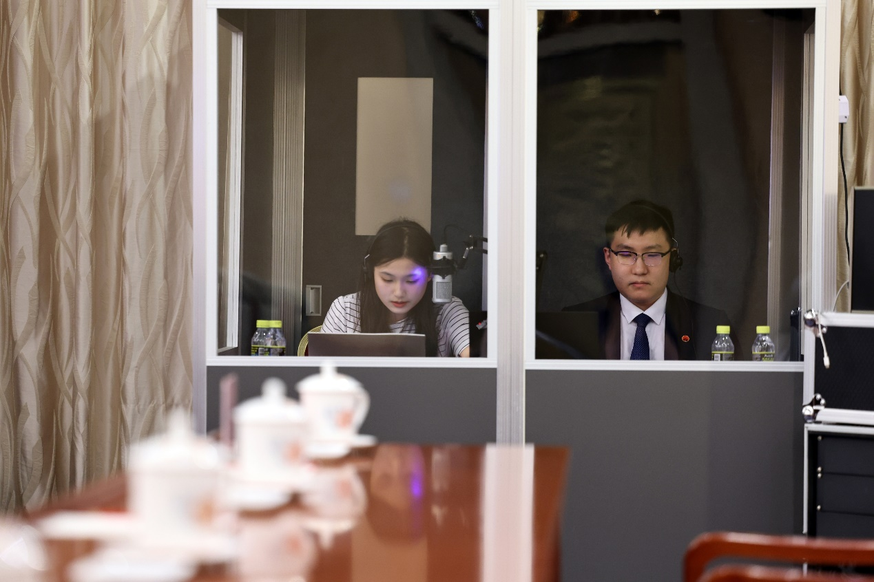 2023年7月5日,全国人大宪法和法律委员会在全国人大会议中心与蒙古国宪法法院举行立法交流活动。北外久久成人网站2019级蒙古语专业学生王羽婷(下图左一)全程参与此次活动的同声传译工作,并收获好评。