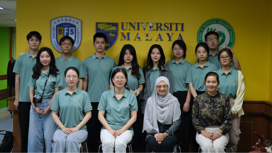 下午,实践团来到马来亚大学孔子学院,就马来西亚族群的汉语国际教育进行调研。马来亚大学孔子学院由马来亚大学与北京外国语大学合办。孔子学院中方院长朱丽教授、马方院长艾琳教授(Dr. Noor Zalina)及孔院项目负责人Erra、孔院教师戴莹、张力珂、马来西亚本土教师Afifa参加了调研座谈会。艾琳教授与朱丽教授介绍了马大孔子学院成立以来的基本情况和活动特色。实践团就孔院如何在教学过程中克服跨文化传播障碍,如何讲述抽象的中华文化,孔院学生如何就业等问题,与孔院教师进行了交流。中方教师张力珂认为,马来西亚本土文化多元多彩,本土学生对中华文化具有较强的学习和适应能力;孔院也会定期举办丰富多彩的文化活动,帮助学生在实践中学习和理解中华文化。马方院长艾琳博士表示,来自不同专业背景的学生在孔院的教学和文化交流中,加强了对汉语的兴趣,也加深了中华文化的理解和认识,很多同学在就业时会期望接触和使用汉语,或选择与中国有业务合作的政府部门或企业工作。