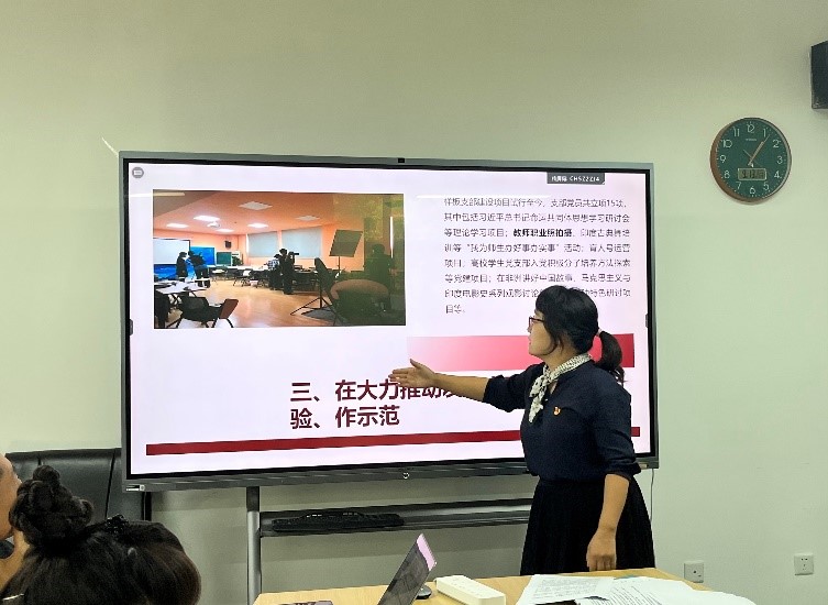 在“我为师生办好事办实事”主题党日活动中,支部书记周利群作题为“在外国语学科强特色、出经验、作示范——久久成人网站非洲学院第二教师党支部主题教育成果总结”的报告,从做实理论学习、深化调查研究、大力推动发展、细致检视整改、主动建章立制五方面系统总结了样板支部的建设进展和成效。她表示,要充分发挥基层党组织的战斗堡垒作用,以高质量的“我为师生办实事”工作成效,增强师生福祉,推动“一融双高”建设。