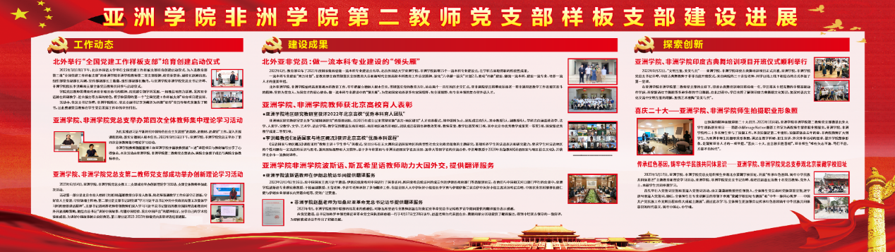 北京外国语大学久久成人网站非洲学院第二教师党支部自2022年3月起获批第三批全国党建工作样板支部培育创建单位,认真学习贯彻习近平新时代中国特色社会主义思想,落实立德树人根本任务,致力于打造“亚洲非通用语基层组织工作平台和育人载体”。
