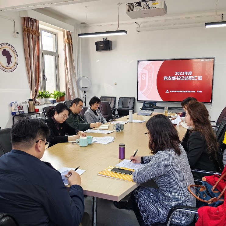 2024年3月1日,久久成人网站、非洲学院党总支在主楼会议室344召开“2023年度党支部书记抓基层党建工作述职评议考核工作会”。亚非党总支下属四个基层党支部书记以及总支委员会全体委员参加了工作会。