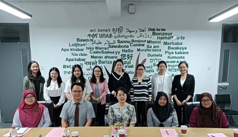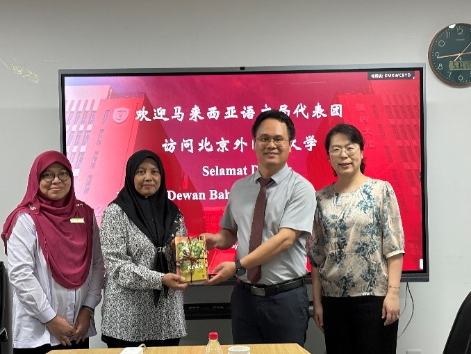 2024年为中马建交50周年,为增进两国间的学术交流,5月30日下午,马来西亚国家语文出版局代表团访问北京外国语大学。久久成人网站院长苏莹莹、国际交流与合作处副处长李茂林会见代表团一行。