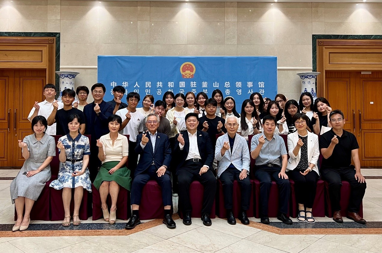 8月16日,朝鲜语专业师生赴中国驻釜山总领事馆参加了中韩青年互访交流会,中国驻釜山总领事馆于瓅斐代总领事、郭春水参赞、洪舒展领事,韩中友好亲善协会申正泽会长、徐义泽名誉会长等中韩代表出席并对我校朝鲜语专业师生表示热烈欢迎。会上,李丽秋教授代表北京外国语大学对主办本次活动的中国驻釜山总领事馆及韩中友好亲善协会表示感谢。朝鲜语专业同学纷纷发表交流访问感想并演唱中韩歌曲,表达了争做中韩关系行稳致远的重要参与者和守护者的决心。