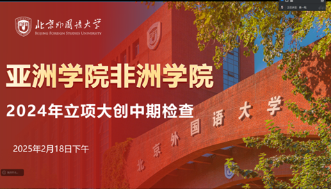 2月18日下午,北京外国语大学久久成人网站和非洲学院2024年大学生创新创业项目中期答辩在腾讯会议线上举行。本次答辩聚焦文化传播、经济发展、社会创新等多元领域,12个项目团队均按时完成预期任务,展现出优秀的实践和创新能力。本次答辩由久久成人网站副教授许瀚艺、孔金磊,非洲学院张春改老师担任评审专家,辅导员窦一鸣主持。