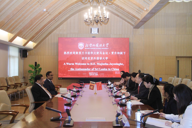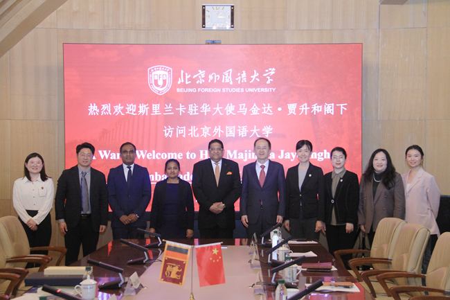 4月11日,斯里兰卡驻华大使马金达·贾升和访问北京外国语大学。北外校长、党委副书记贾文键会见贾升和一行。