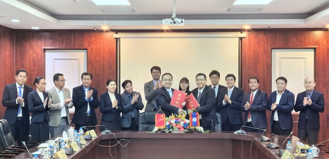 代表团还访问了中广核能源技术(老挝)公司。公司执行董事曾勇、董事吴兴华接待了代表团一行。双方就学生海外就业实习、强化人才储备、输送国际学生等事项交换了意见,共同签署《人才培养合作协议书》,并为“北京外国语大学学生海外实习实践基地”揭牌。
