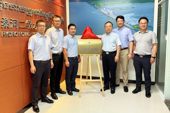 4月26日上午,代表团访问柬埔寨中国华能桑河二级水电有限公司,与公司党委书记何云春、华能驻柬代表郭俊、桑河营销及国际合作部主任李杰等展开座谈交流。贾德忠介绍了北外人才培养优势及毕业生就业情况。何云春讲述了公司发展情况以及对高层次国际化人才的需求。双方共同为“北京外国语大学学生海外实习实践基地”揭牌。