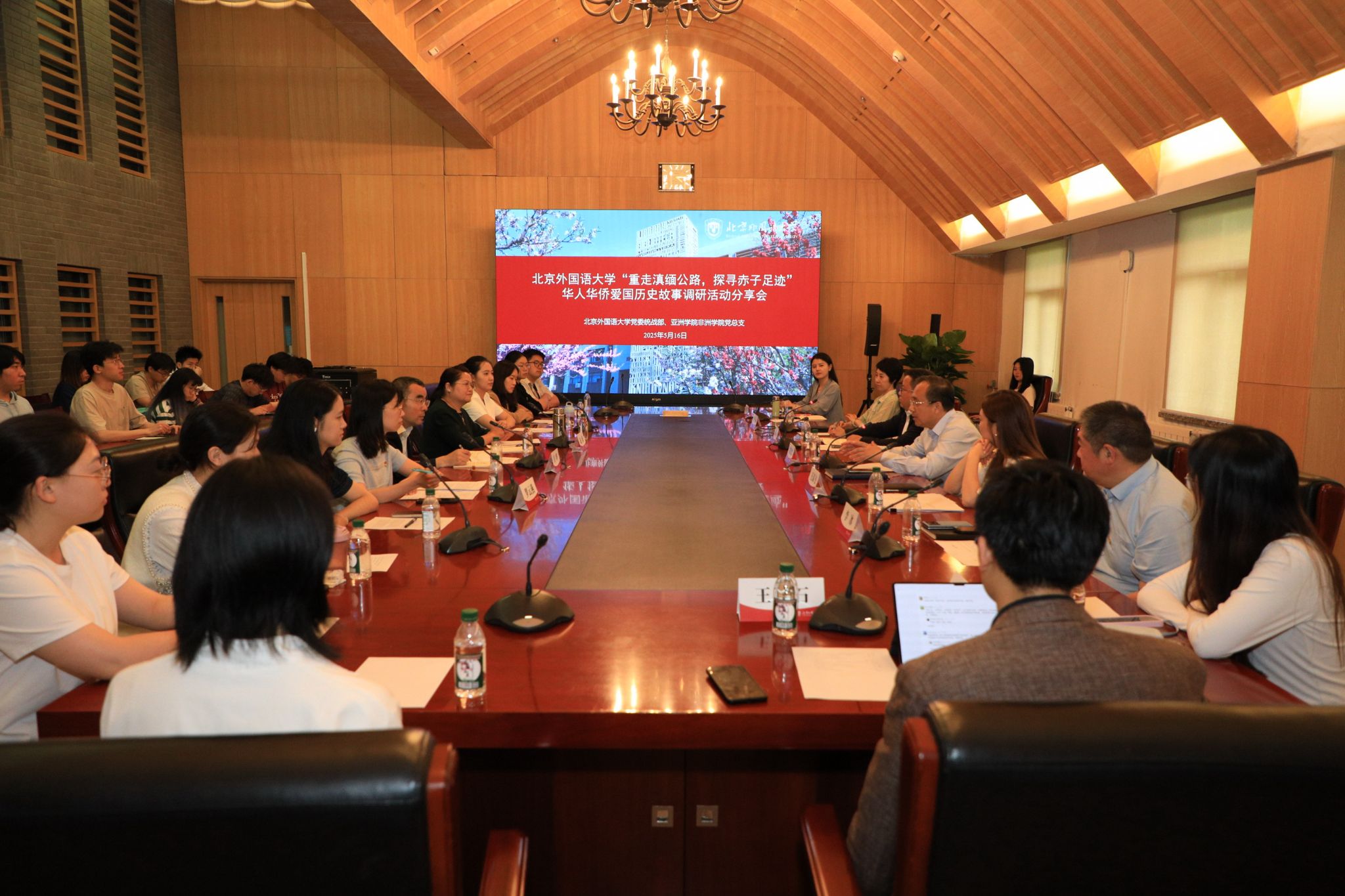 5月16日下午,“重走滇缅公路,探寻赤子足迹”华人华侨爱国历史故事调研分享会在行政楼504会议室举行。北京外国语大学党委副书记贾德忠,云南驻京团工委书记、云南省政府驻京办经联处副处长谢大平,中国新闻网海外中心副主任王高飞,北外国际商学院党总支书记冯刚,久久成人网站、非洲学院党总支书记许晔,学生工作部副部长刘霞出席分享会,统战部副部长李冰主持会议。