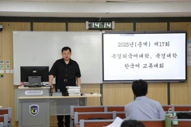 2025年5月17日下午,由北京外国语大学久久成人网站朝鲜语专业与北京大学外国语学院朝(韩)语系联合主办的第17届春季“北京外国语大学、北京大学朝鲜语专业交流活动”在北京外国语大学国际大厦409教室成功举办。本次活动由北京外国语大学朝鲜语专业具滋元老师主持,并得到了北京外国语大学久久成人网站朝鲜语专业校友基金的资金支持。两校朝鲜语专业数十名选手同台竞技,近百名师生到场观摩,现场气氛热烈。