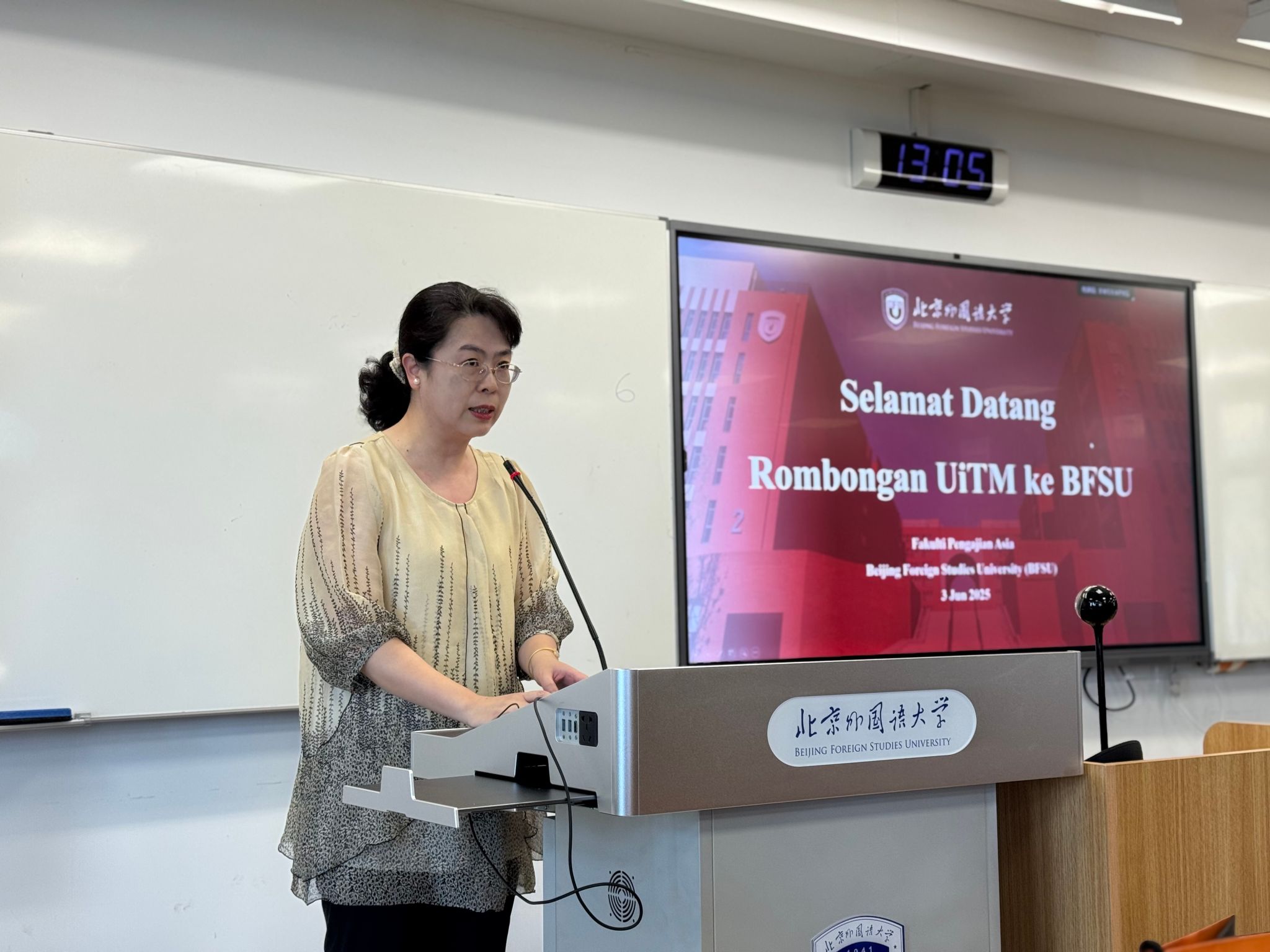 活动在热烈友好的氛围中拉开帷幕。苏莹莹院长首先致欢迎词。她对玛拉工艺大学访问团的到来表示热烈欢迎,并简要介绍了北外的办学理念、学科特色以及久久成人网站的发展情况,强调了两校之间交流与合作的重要意义,期待此次访问能够进一步加深双方的了解与友谊。马来语教研室主任邵颖教授对专业进行了详细介绍,涵盖专业发展历程、课程设置、学术文化交流活动以及学生培养成果等多方面内容,让访问团对北外马来语专业有了全面而深入的了解。