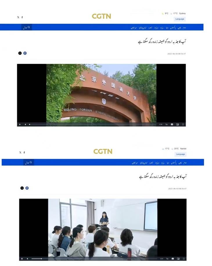 节目录制于北外校园,这一选择不仅凸显了北京外国语大学作为中国乌尔都语教育重镇的独特地位,也展现了北外在服务国家外交战略、培养高素质复合型外语人才方面的重要作用。作为中国开设乌尔都语本科专业的高等院校之一,北外为推动中巴语言文化交流、深化两国合作做出了积极贡献。本期节目视频于6月3日在CGTN乌尔都语板块官方网站及其Facebook官方账号@FM98DostiChannel同步发布。上线后,迅速获得了中巴两国网友的积极观看、点赞与互动,成为近期传播语言魅力、增进中巴情谊的又一精彩力作。