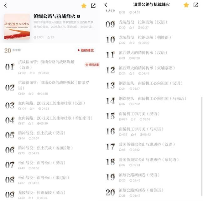 调研结束后,党支部成员依据调研成果,制作了以“滇缅公路与抗战烽火”为主题的双语音频专辑20条,并于近日在“学习强国”平台发布。此次作品上线,不仅展现了两院青年学子用外语讲好中国故事的能力,也为红色历史在新时代的传承与传播注入了青春力量。