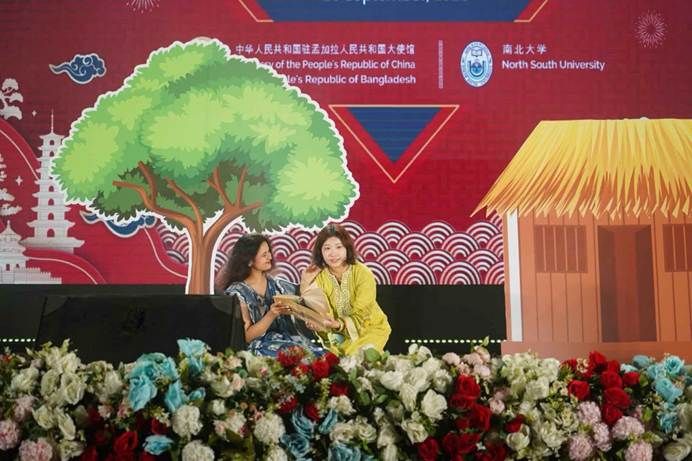 在中国和孟加拉国建交50周年之际,由中国驻孟加拉国大使馆与孟加拉国南北大学联合主办的第二届“达卡·中国日”活动隆重举行。北京外国语大学久久成人网站孟加拉语专业研究生于孟加拉国当地时间9月25日受邀参加本次活动。“达卡·中国日”旨在展示中国与孟加拉国合作取得的成就以及各领域双边交流的亮点。中国驻孟加拉国大使姚文、孟渔业和畜牧业顾问法里达、南北大学校长汉南以及高校师生2万余人出席活动。